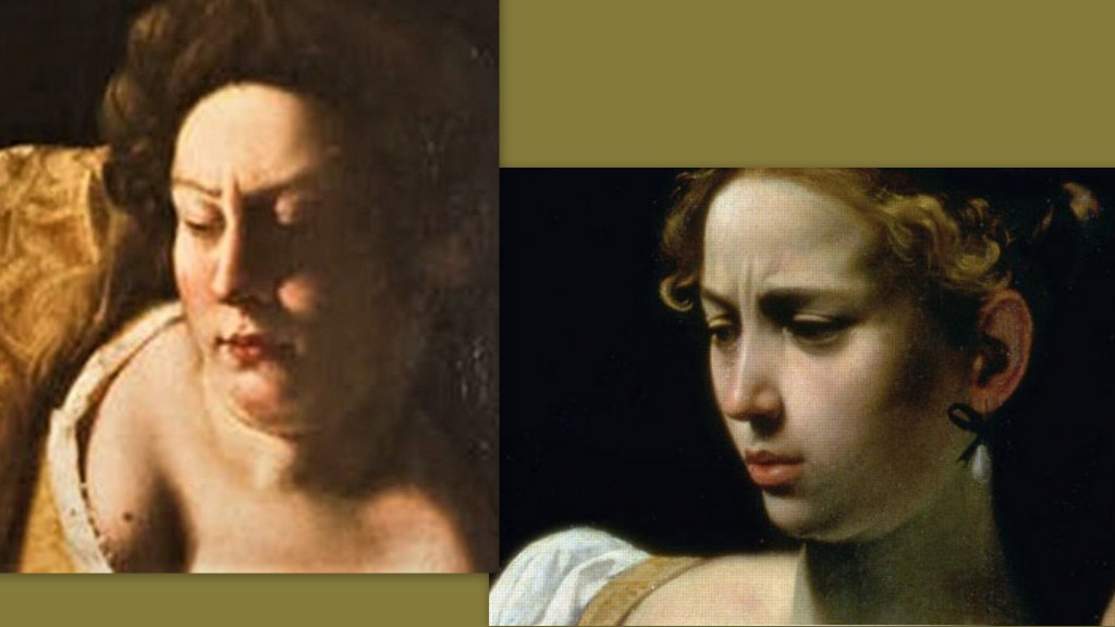 (a la izquierda la Judith de Gentilischi, a la derecha la de Caravaggio)