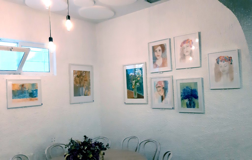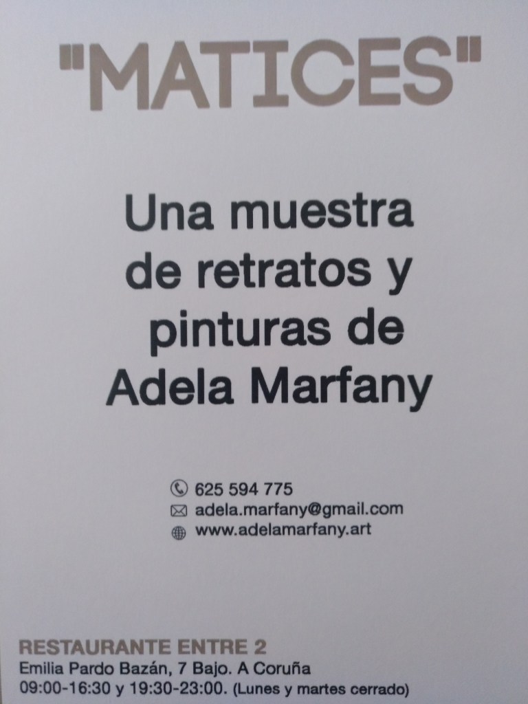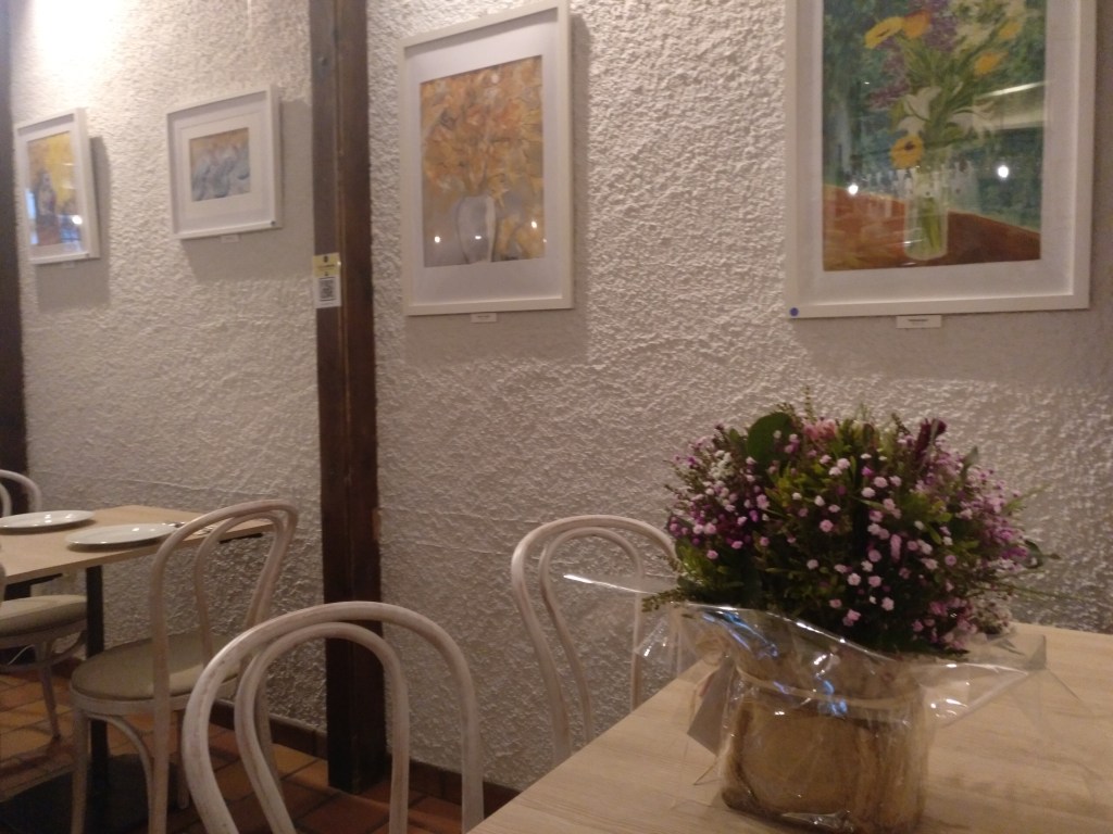 En este mes mis cuadros continúan colgados de las paredes del restaurante «Entredós» donde me he sentido como en casa por la cálida acogida de Armando y muy arropada por todos los amigos que me han ayudado y acompañado en esta aventura.