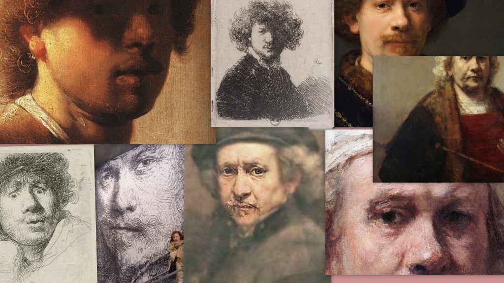 Sus autorretratos componen una biografía única en la Historia del Arte, pues se conocen más de cien. Suponen la expresión íntima de más de cuarenta años de vida e indican cómo cambió a lo largo del tiempo, el concepto de sí mismo: de joven se veía como un ciudadano alegre, seguro y emprendedor; en su madurez se representó como un hombre equilibrado y en su vejez, como un genio conocedor de los secretos de la vida interior.