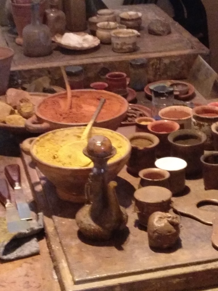 El Departamento Científico de la National Gallery de Londres, utilizando modernas técnicas analíticas, ha desarrollado un programa de investigación de los materiales utilizados por Rembrandt y sus modos de elaboración. Antes de los siglos XIX y XX, el artista se veía constreñido a utilizar materiales extraídos de la naturaleza. Entre estos materiales hay semillas y frutos, resinas de árbol, ceras, colas de origen animal y goma vegetal. En las obras de Rembrandt, hay una preponderancia del aceite de linaza como aglutinante de la materia pictórica. Él experimentaba con los colores. No sabía de química en sentido estricto, pero buscaba el reflejo de la luz en la pintura aplicada con el pincel.