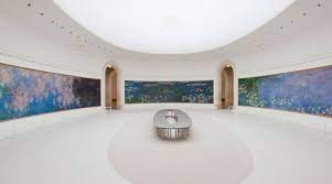 Estas obras fueron ofrecidas por Monet a Francia después del armisticio del 11-11-1918 como símbolo de paz. El conjunto es una de las más grandes obras monumentales de la pintura de la primera mitad del siglo XX. Las dimensiones de las pinturas son colosales, su altura es de 2 metros, y la longitud total de los 8 paneles es de…91 metros. En las dos plantas inferiores del museo se exhibe la colección de Paul Guillaume, con obras de Cézanne, Renoir, Rousseau, Picasso, Modigliani, Matisse, Utrillo, André Derain, Soutine… distribuidas en una decena de pequeñas salas.