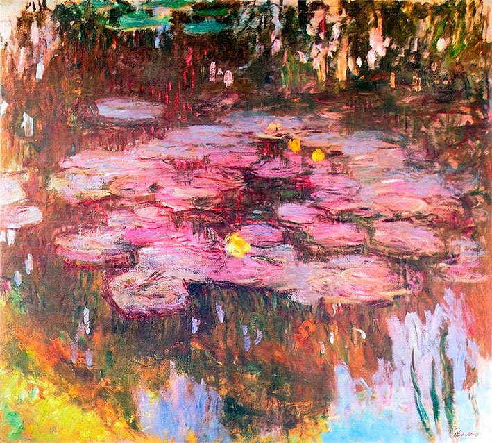 Solo voy a recordar hoy «Los nenúfares» de Claude Monet .Los Nenúfares, no sólo se refiere a un cuadro, sino a toda una colección de obras, que Monet había empezado casi treinta años antes.