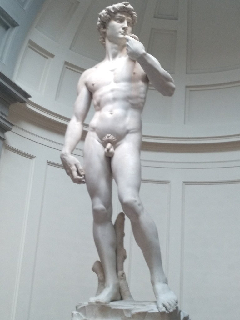 Con más de 5 metros de altura, el David fue esculpido por Miguel Ángel con cincel partiendo de un solo bloque de mármol y desde distintos puntos de vista, concibiéndose la obra para poder ser admirada desde cualquier punto. Representa al héroe bíblico David en el momento de concentración antes de pasar a la acción y atacar a Goliat.