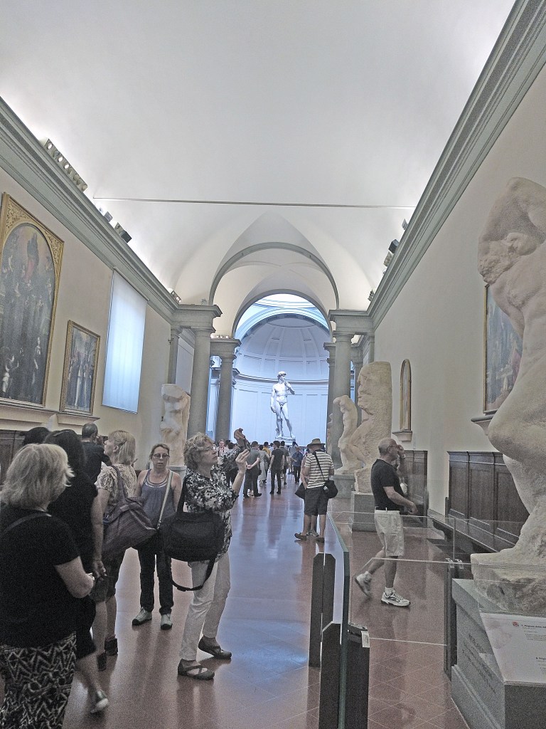 El principal reclamo de la Galería de la Academia, es la grandiosa escultura del personaje bíblico David que esculpió Miguel Ángel. Aquí reside desde 1873, cuando se trasladó para evitar que se deteriorase en su anterior ubicación, la Piazza della Signoria, pues hasta ese momento había estado a la intemperie. Ahora, en dicho lugar vemos una réplica del original, así como de muchas otras esculturas que también están bajo el techo de la Academia.