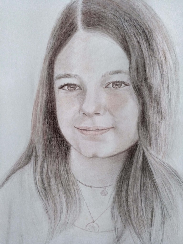 Este mes, solo publicaré un retrato hecho con lápices de «sanguina y sepia». Refleja a una joven de sonrisa casi tan enigmática como la de la famosa «Gioconda» . He tratado de captar la serenidad que transmite en la mirada y esa frescura propia de la edad, como queriendo mostrar quien es sin reservas. Ella es mi «Diosa» del mes de Julio.