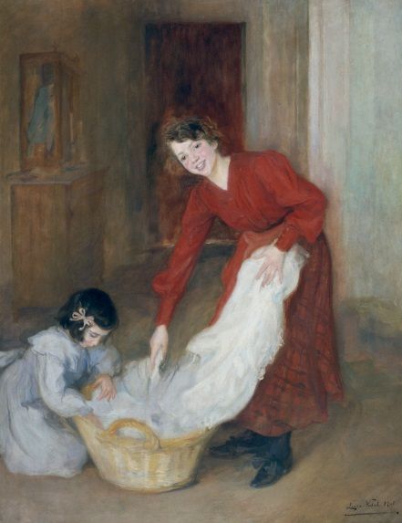 Lluisa se libró de entrar en la llamada ‘pintura femenina’, que solía limitarse a las flores y a los bodegones, para optar por la persona, protagonista de sus pinturas, retratando la gente de su entorno. Sus obras sobresalientes plasman la vida diaria de las mujeres: la colada, el cortejo, los momentos de ocio.
