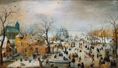 Siglo de Oro holandés, es bien conocido por sus perspectivas aéreas y considerado uno de los máximos exponentes del paisaje invernal por el dominio de las luces y el detalle. Sus obras son muy diferentes a las del resto de sus contemporáneos, con mucha luz y colores más vivos. Esta es una de sus primeras obras (1608), en ella se observa el ir y venir de todo tipo de personas involucradas en una gran variedad de actividades, desde jóvenes patinando a burgueses paseando e incluso gente haciendo sus necesidades al aire libre